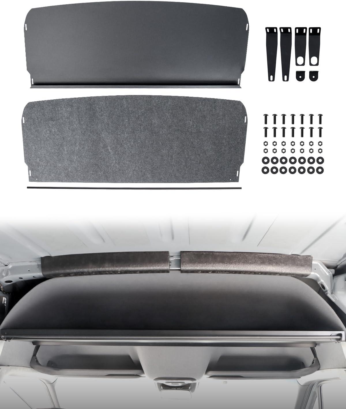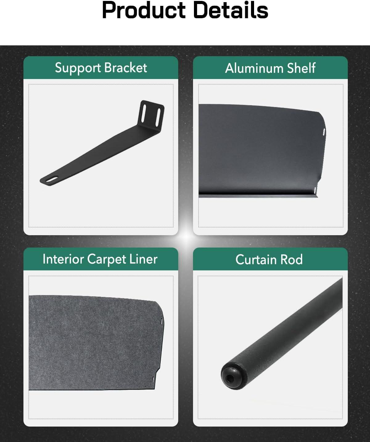 Include: Aluminum headliner shelf, Carpet Liner, Straight Curtain Rod (Curtain not included), Mounting matching hardware + fasteners