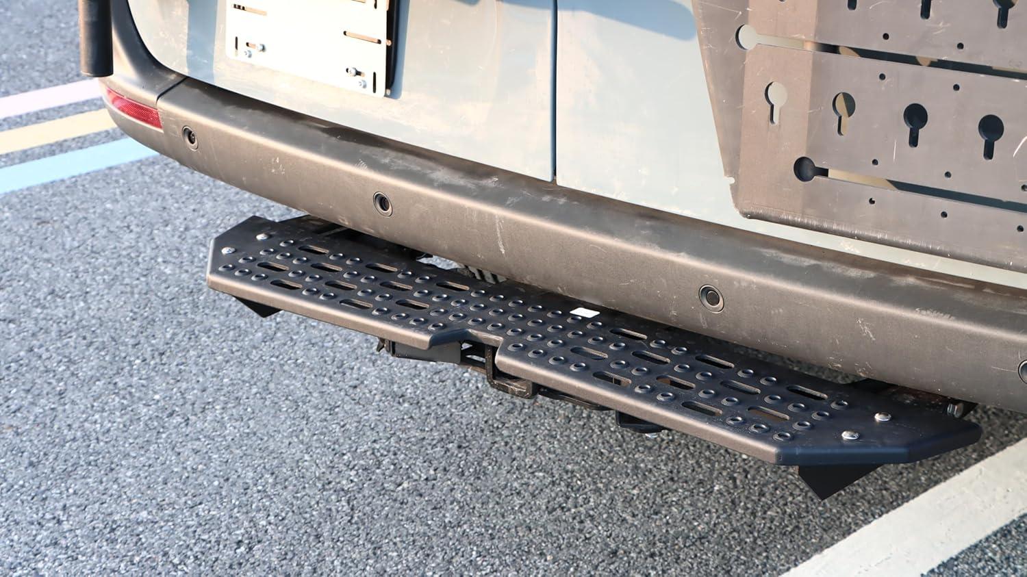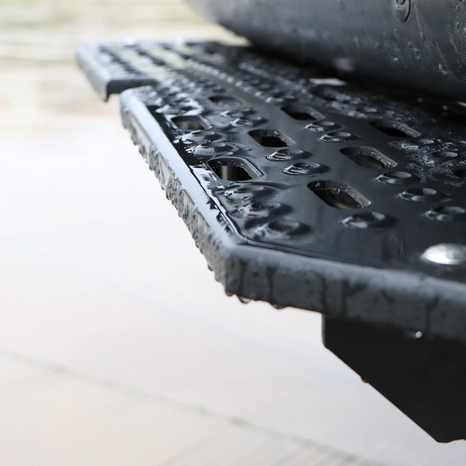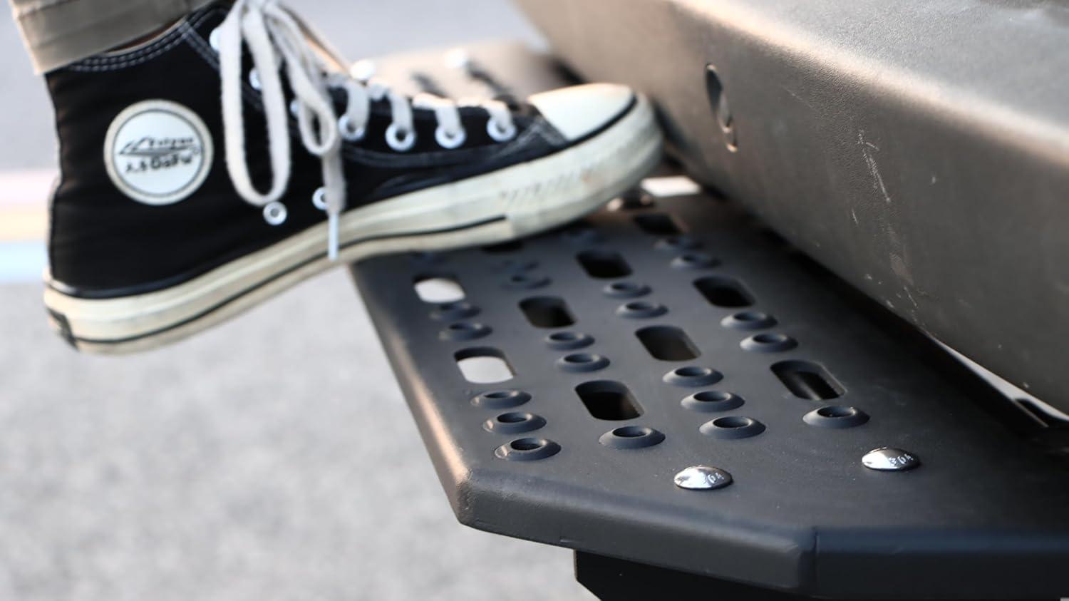Durable Grip: All external components are powder-coated for a scratch- and corrosion-resistant finish. Combined with stainless steel hardware, the step resists rust and damage even in rain or harsh conditions. Dimpled, non-slip tread plates provide secure footing for safe entry and exit, whether you’re stepping in after loading gear or during outdoor adventures