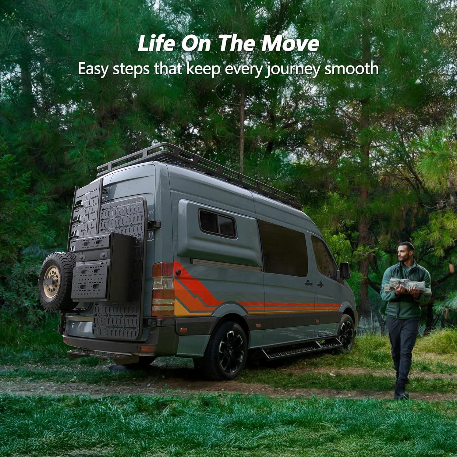 Board-Style Step:The plate-style design provides a wide, stable platform for safe and comfortable entry into your van. Its sturdy construction supports every step, while pairing perfectly with other VANNCAMP accessories like side ladders, rear tire carriers, and roof racks for a coordinated look and enhanced functionality