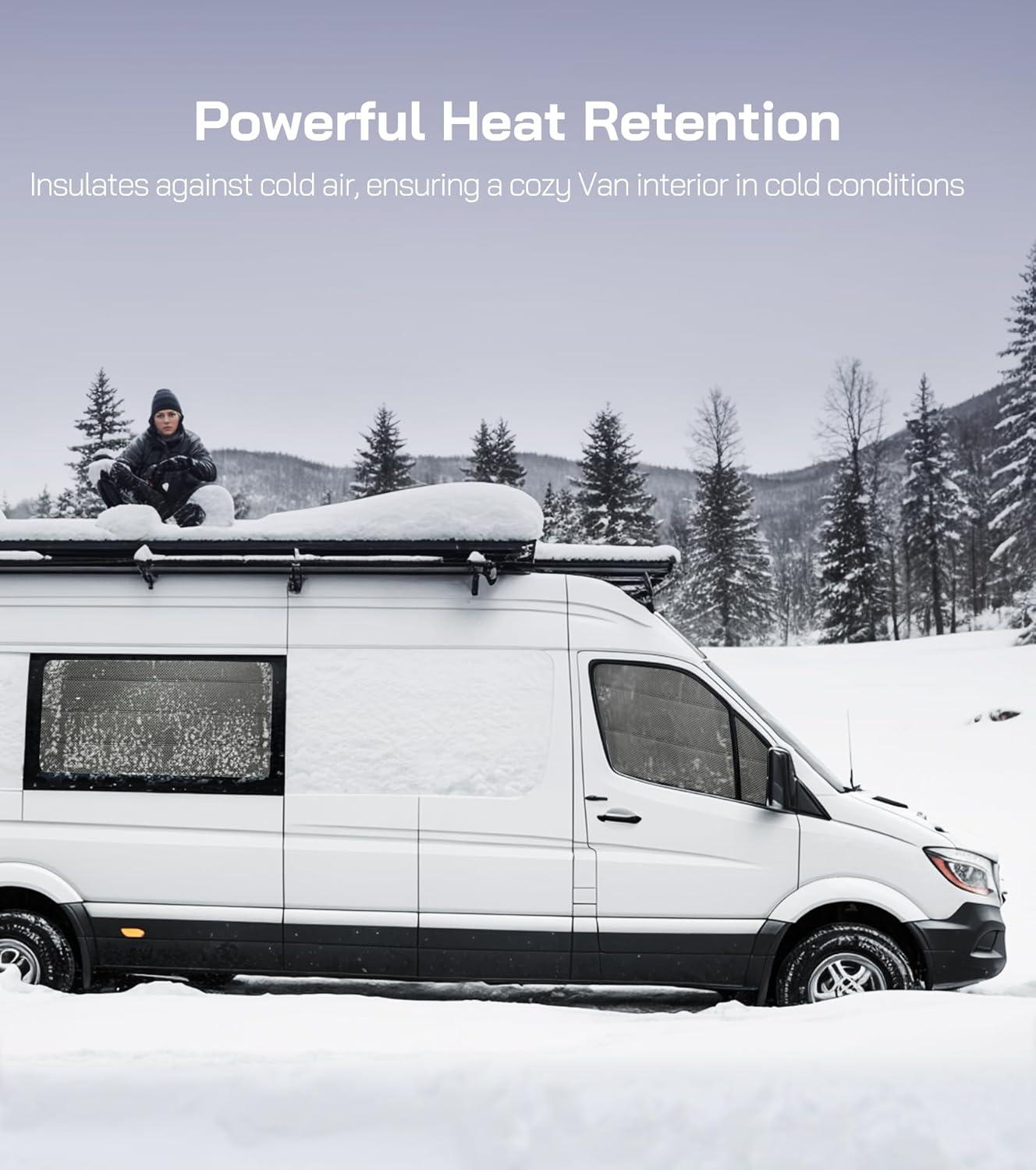 Enhanced Thermal Protection: This 4-season window cover features a 6-layer structure, combining five layers of premium insulation with a thick cotton core. It provides excellent sun protection by reflecting heat away in summer, while the added cotton layer helps trap warmth inside during winter—perfect for all-season van life