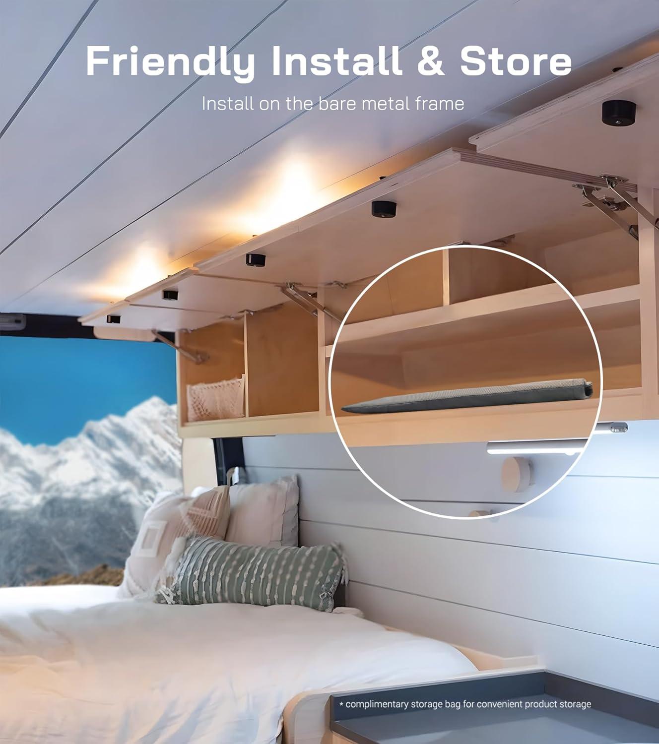 Magnetic Installation: Features built-in magnets that easily attach to exposed metal window frames for a quick and secure fit. For vans with non-metallic window trims, we offer optional 3M metal strips that can be applied to the frame for compatibility—please contact VANNCAMP if needed. Comes with a storage bag, and the foldable design means the covers take up minimal space when not in use