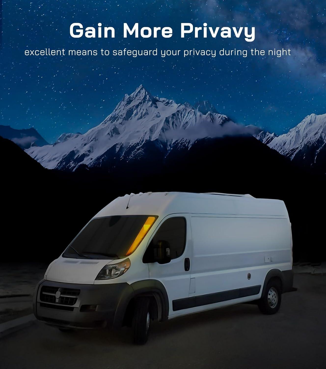 Protect Privacy: These window covers are designed to greatly enhance your van’s privacy by blocking outside views. They help you create a comfortable, secluded space so you can relax and enjoy your van life with peace of mind