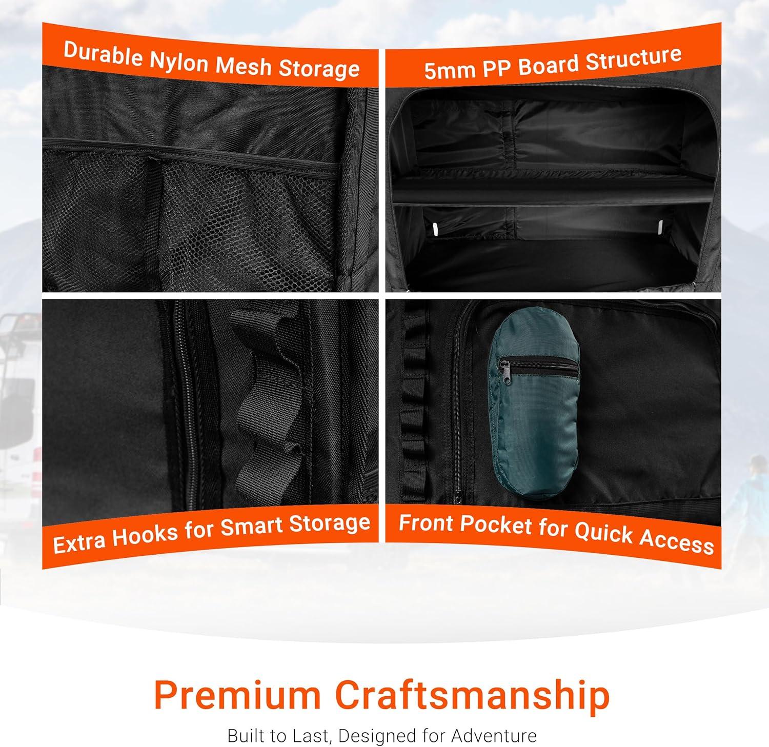 – Effortless Organization: Light gray interior fabric enhances visibility in low-light vans, while large mesh pockets (left/right/underside) and removable shelf optimize versatile storage