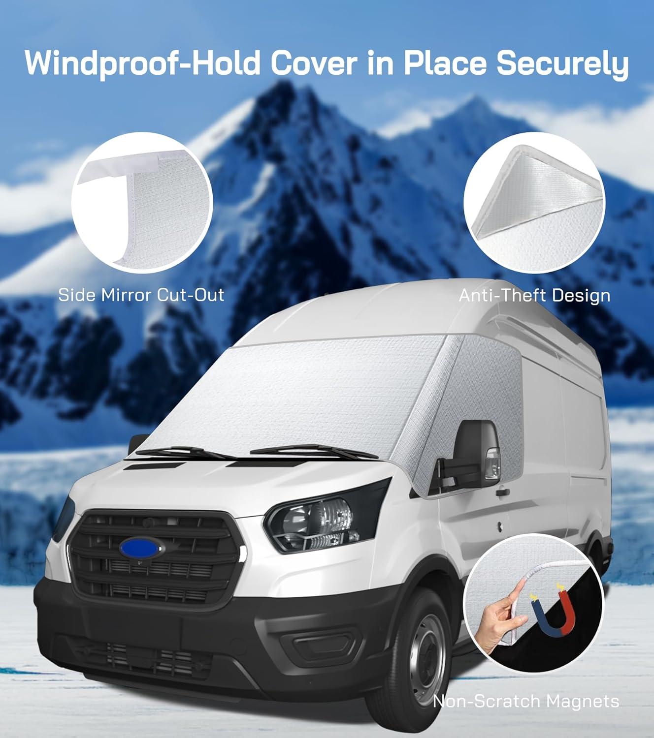 Tailor-Made: Exterior Windshield Cover is custom manufactured for 2016-Current Ford Transit Van, essential van accessories to enhance your travel experience