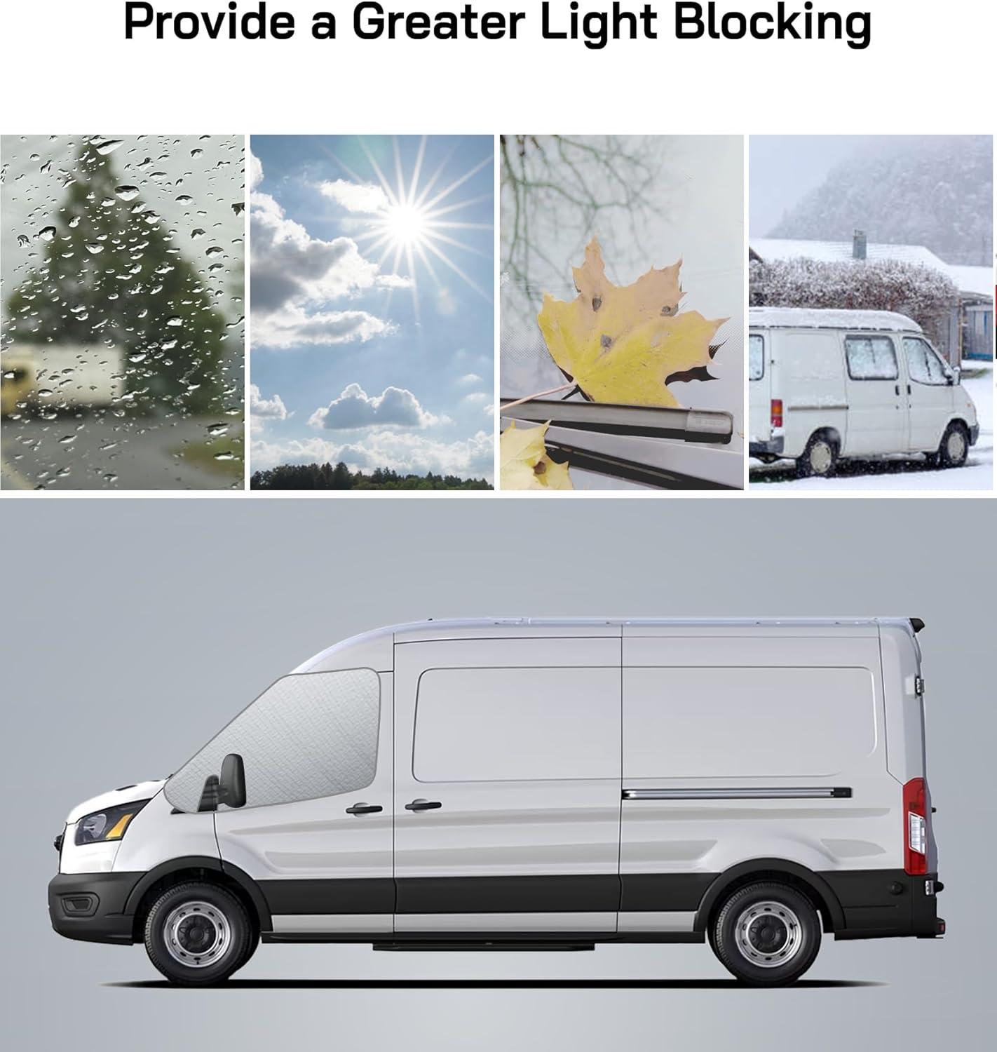 Privacy Shield: Van sunshade cover fully covers windshield and side door windows, blocking UV rays while providing complete privacy
